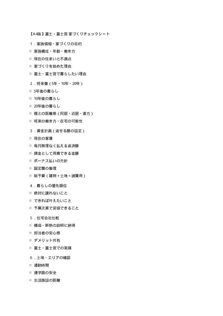 住宅会社・土地選びのチェックリスト(富士・富士宮視点)
