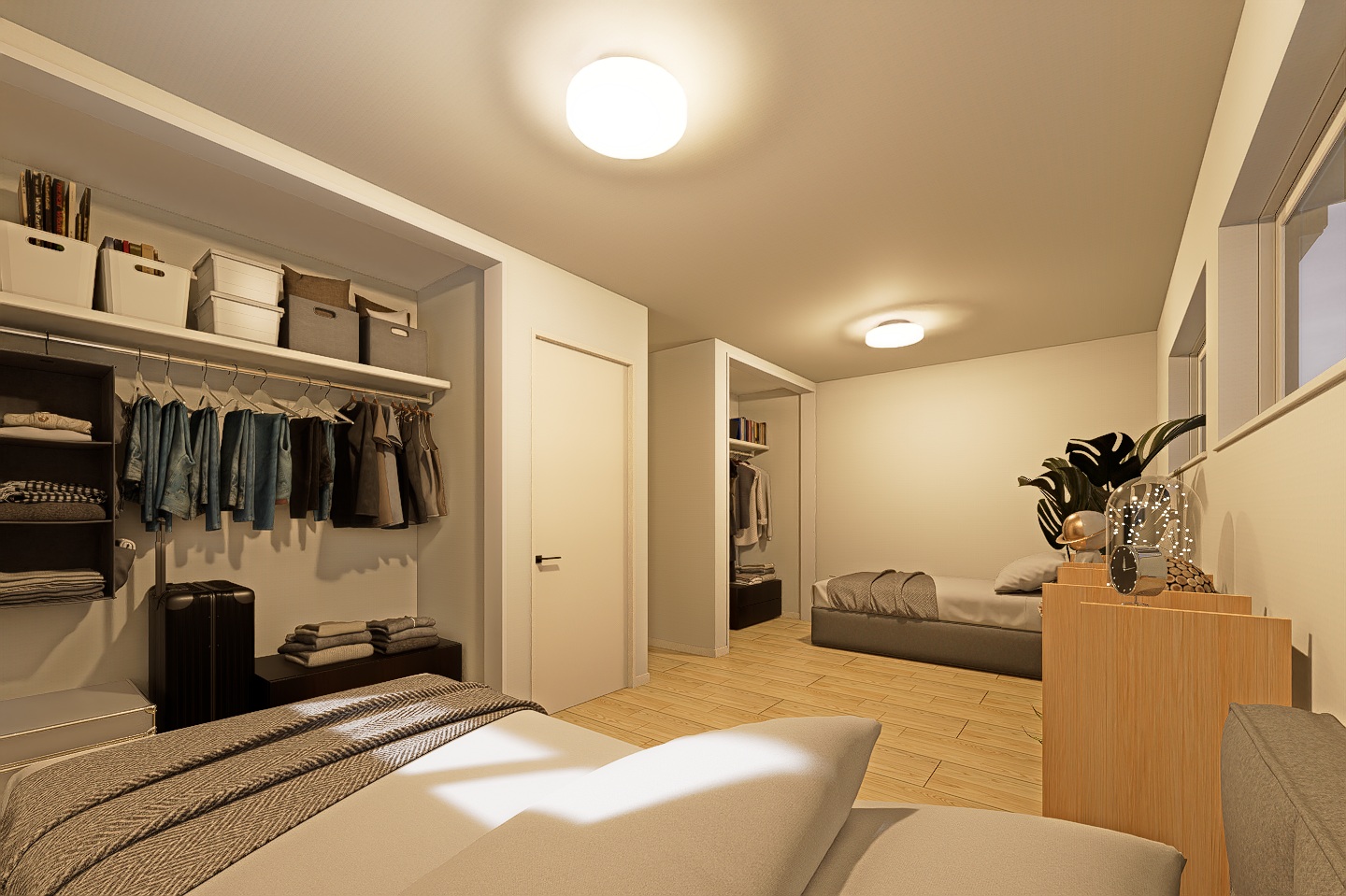必要な場所に必要な量を。衣類や日用品を無理なく整えられる収納で、部屋が散らかりにくい暮らしを目指しました。