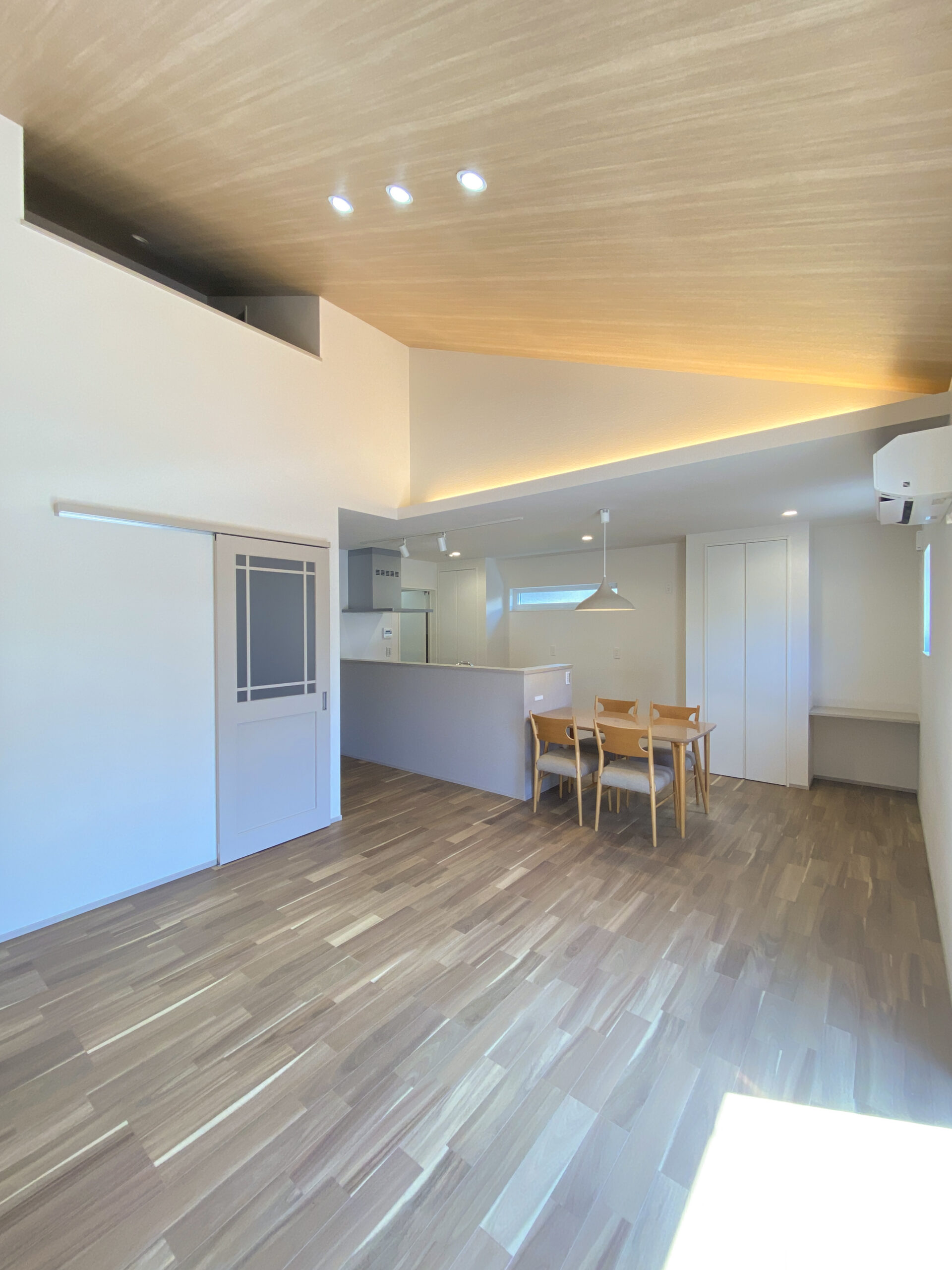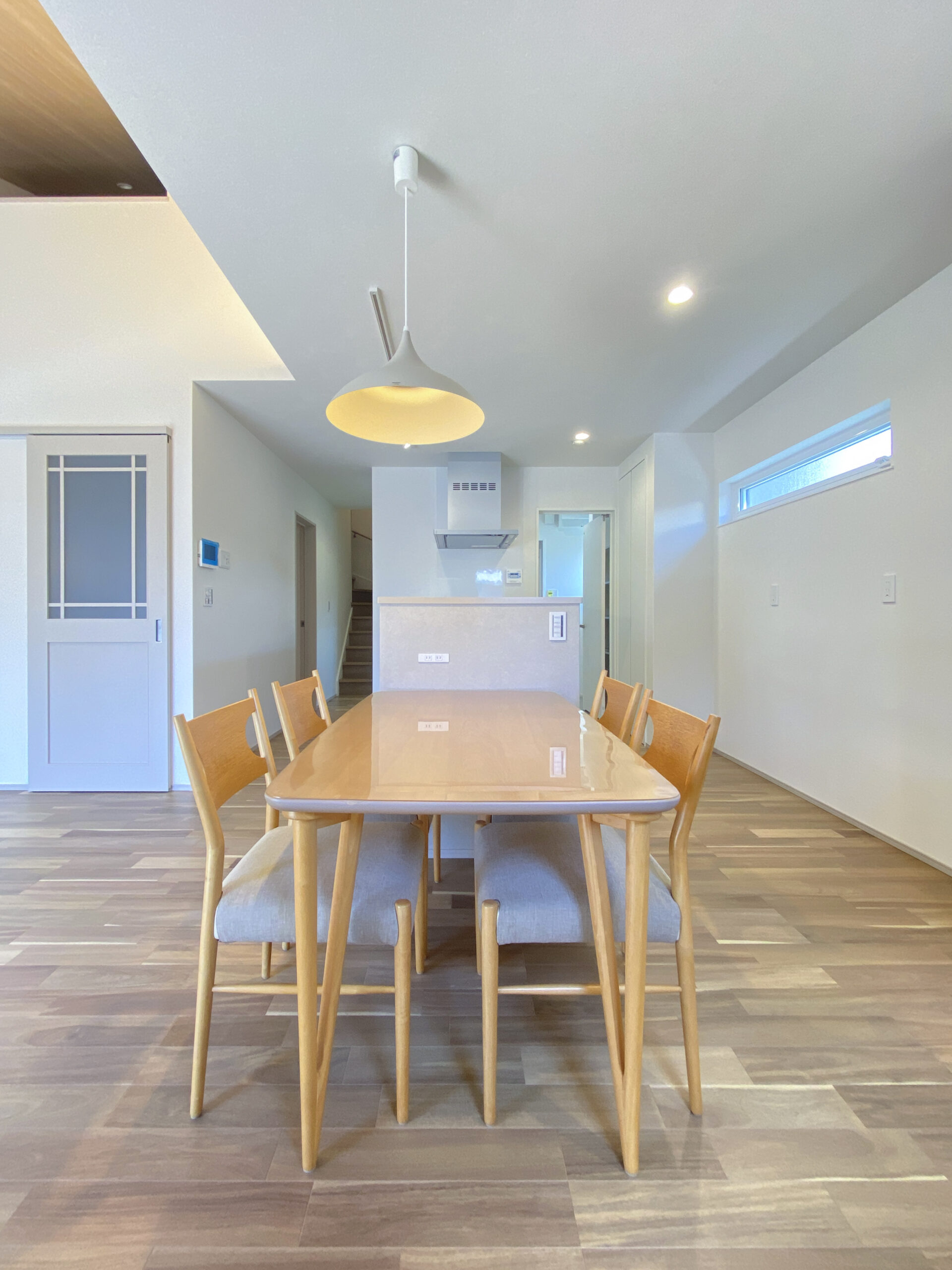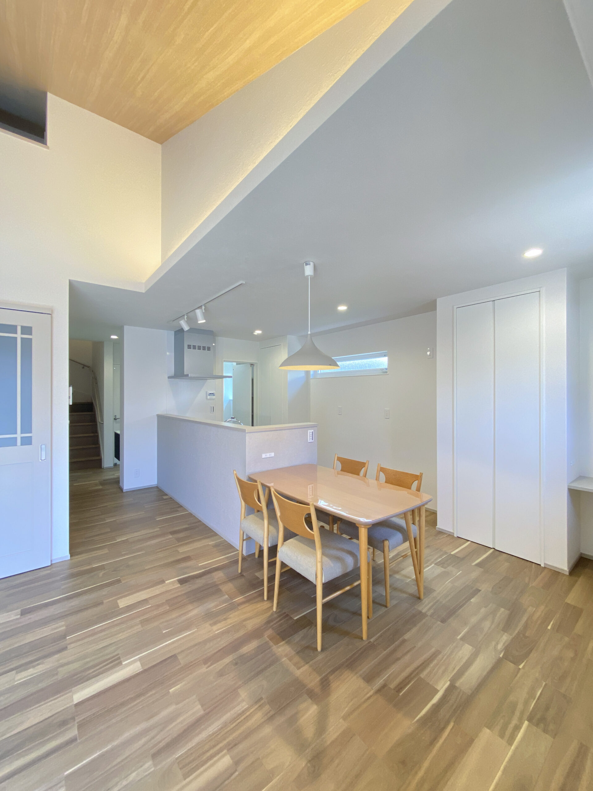 天井まで広がる8帖の大きな吹抜けが、明るく開放的な空間を演出。自然光がたっぷり差し込み、家族が心地よく過ごせる住まいです。