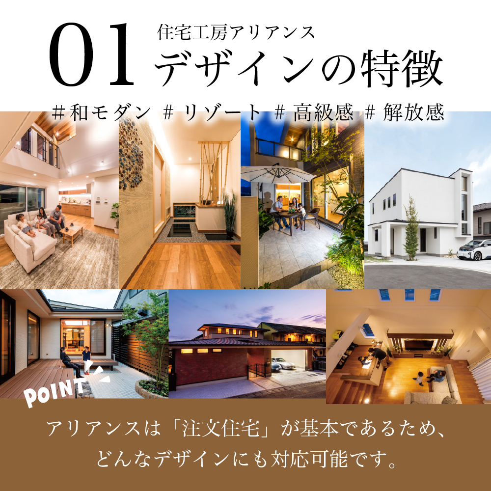 住宅工房アリアンスのデザインは、光・風・視線まで計算した空間設計が特徴です。