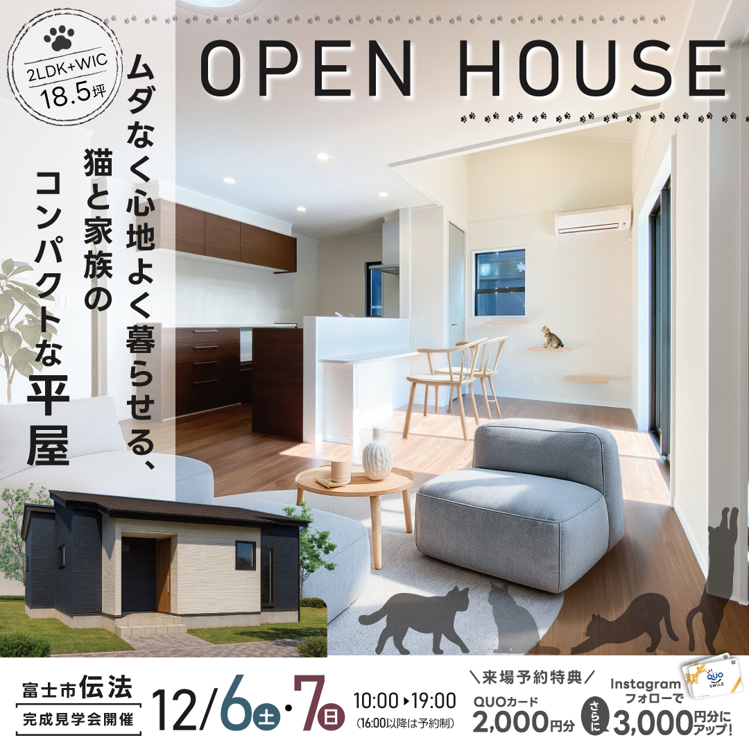 ムダなく心地よく暮らせる、猫と家族のちょうどいい『平屋』完成見学会。