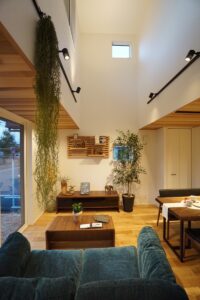 アウトドアモダン 吹き抜け大空間リビング