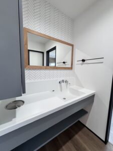 玄関ホールには手洗い場を設置。外出先から帰宅後、リビングへ入る前にすぐ手洗いができるため、衛生面にも配慮された安心の動線設計となっています。お子さまのいるご家庭はもちろん、来客時にも使いやすく、日常生活に自然と溶け込む便利な工夫です。