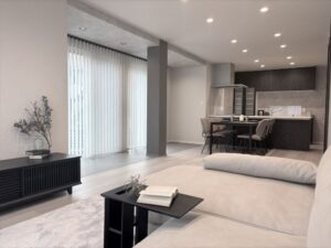 3面道路という開放的な立地を最大限に活かし、外と内が心地よくつながる住まいとして設計されています。オープンなエクステリア計画により、敷地全体にゆとりと広がりを感じられるのが特徴です。