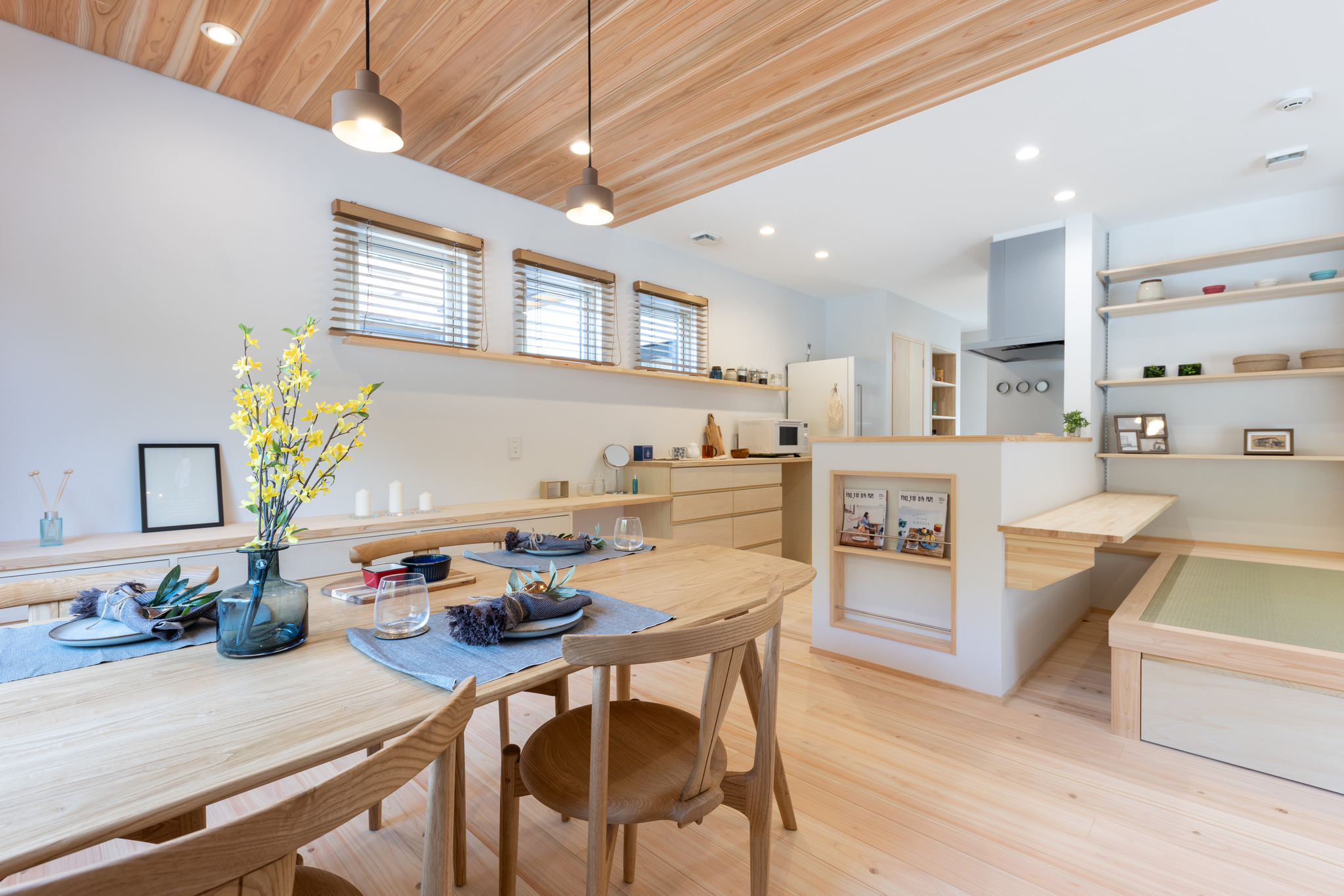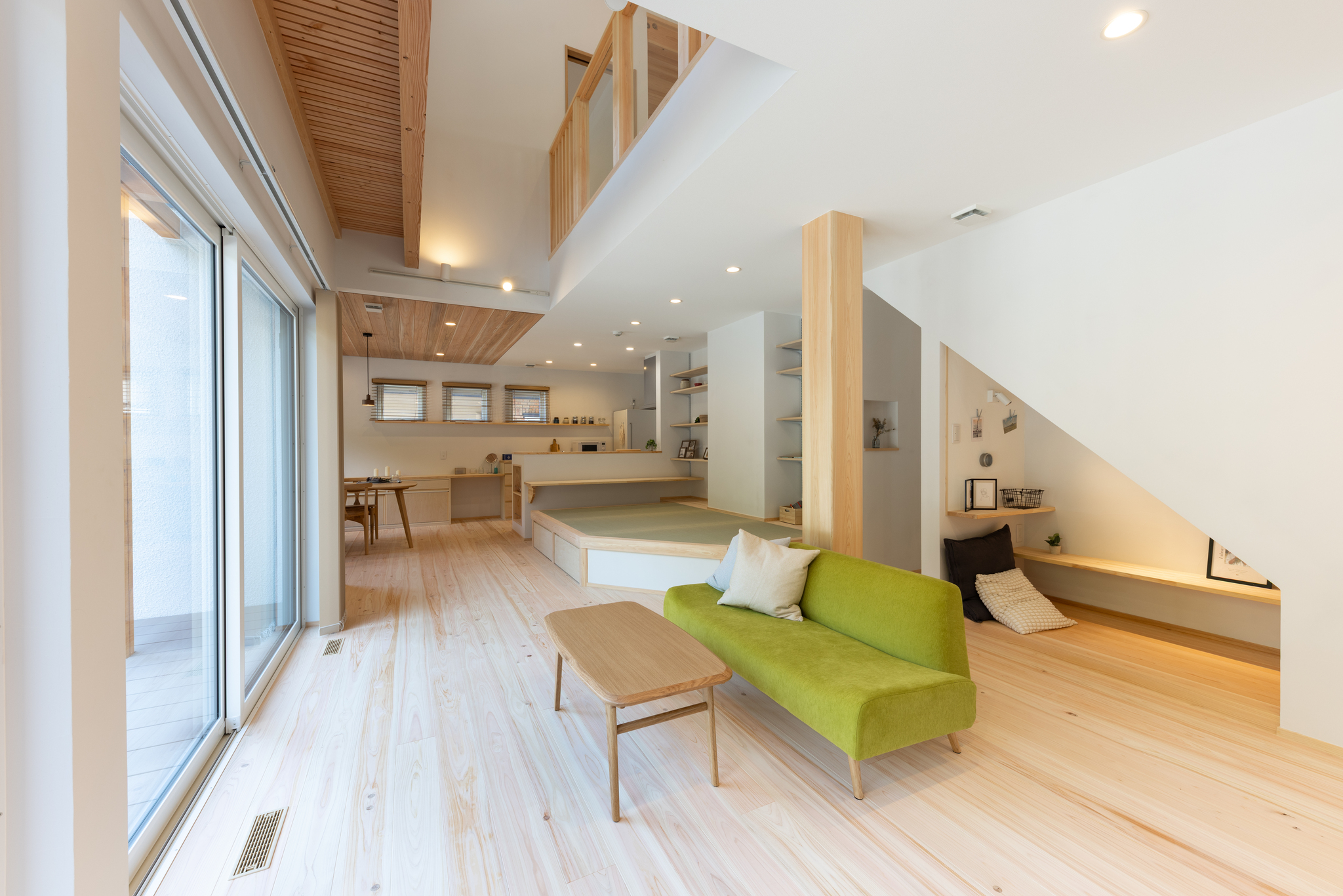 ナチュラル和テイスト 収納たっぷり土間大空間リビング