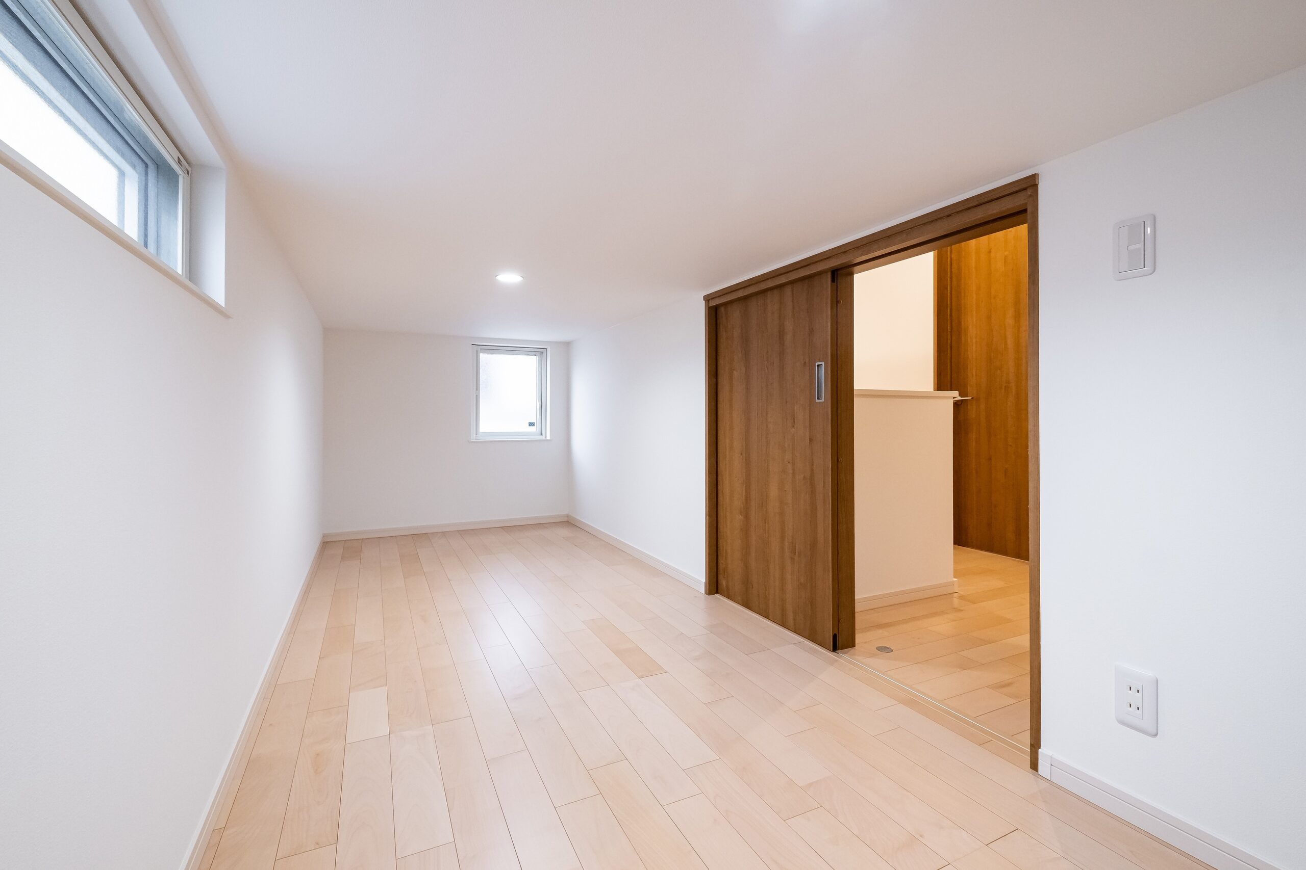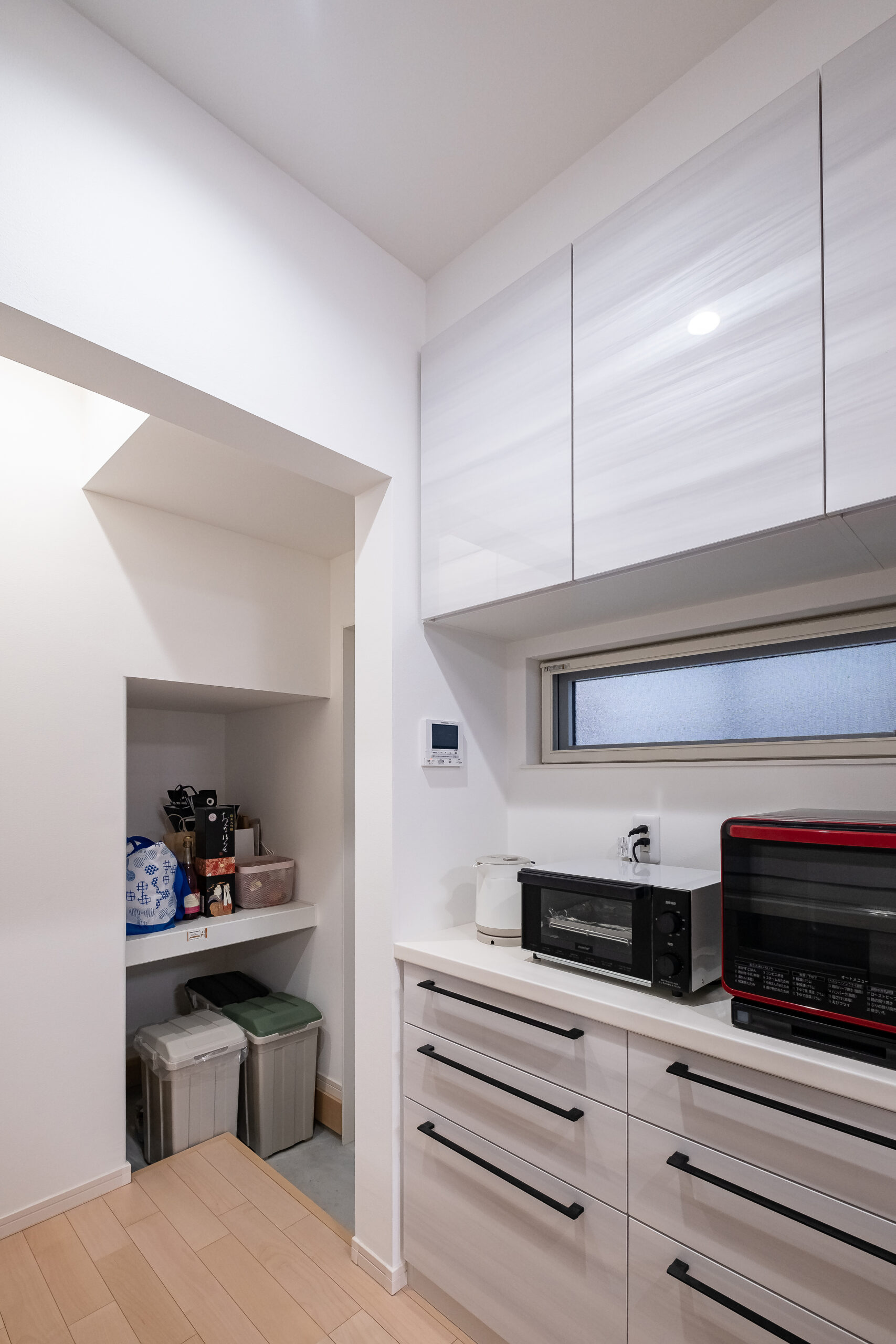 T様ご夫婦はそろって話してくれました。だわりの白を基調にし、明るく、ゆったりと過ごせるLDKには、将来高齢になった時、1階だけでも生活できるように、小上がり和室には珍しいウォークインクローゼットを設けました。また、随所にある収納は、ほとんどが扉・ドア付の「隠す収納」で、2階には廊下から直接出入りできる小屋裏収納もあり、家じゅうスッキリ片付く工夫をしました。