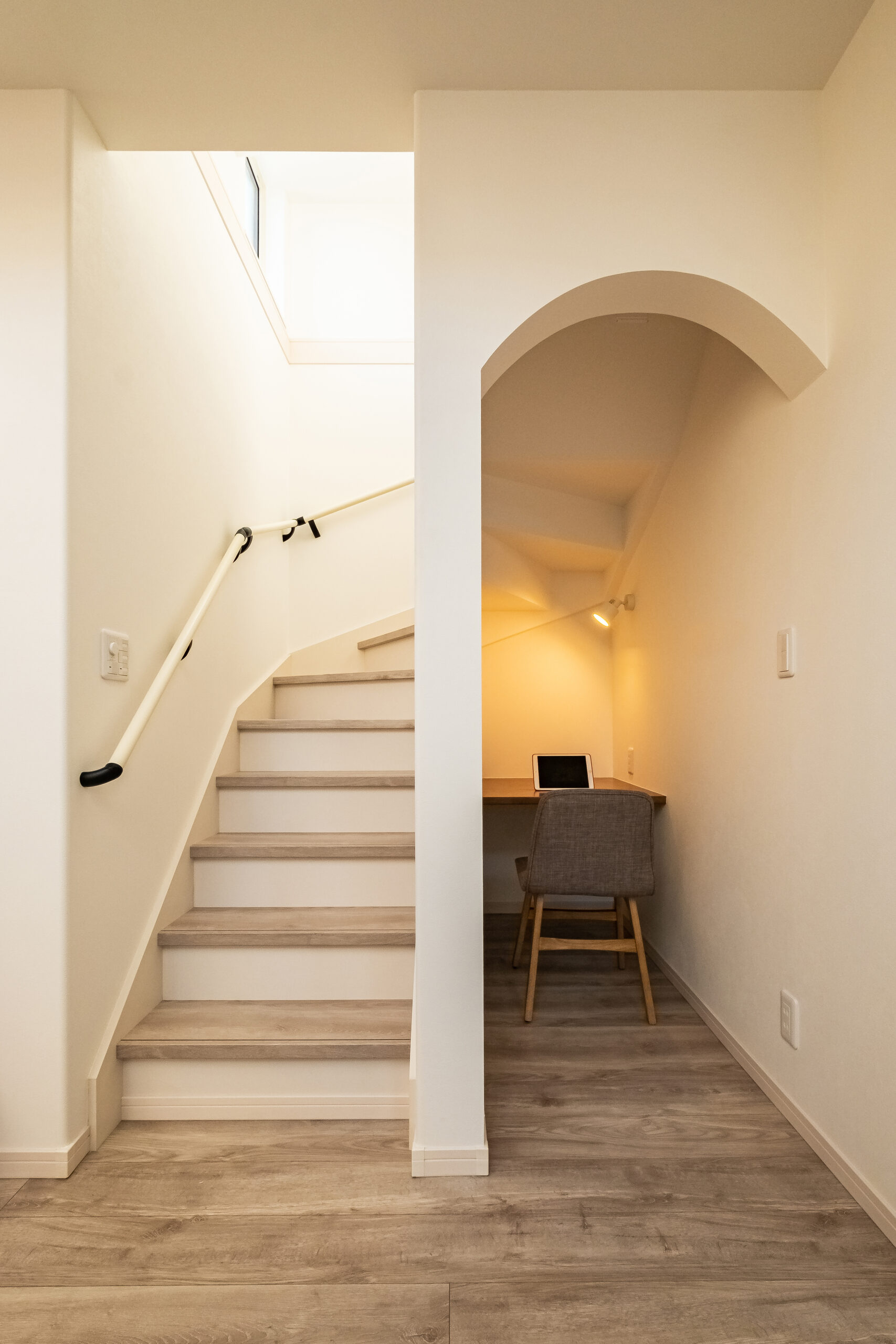 完成したお住まいは、吹抜けのリビングに、洗濯完結のランドリールームから浴室直行の家事ラク動線、階段下を活かしたスタディコーナーなど、暮らしを上手に楽しむアイデアが随所に施されています。さらに、エアコン一台で家中の温度・湿度を一定に保つ全館空調システムを導入し、冬も夏も薄着で快適に過ごされているようです。