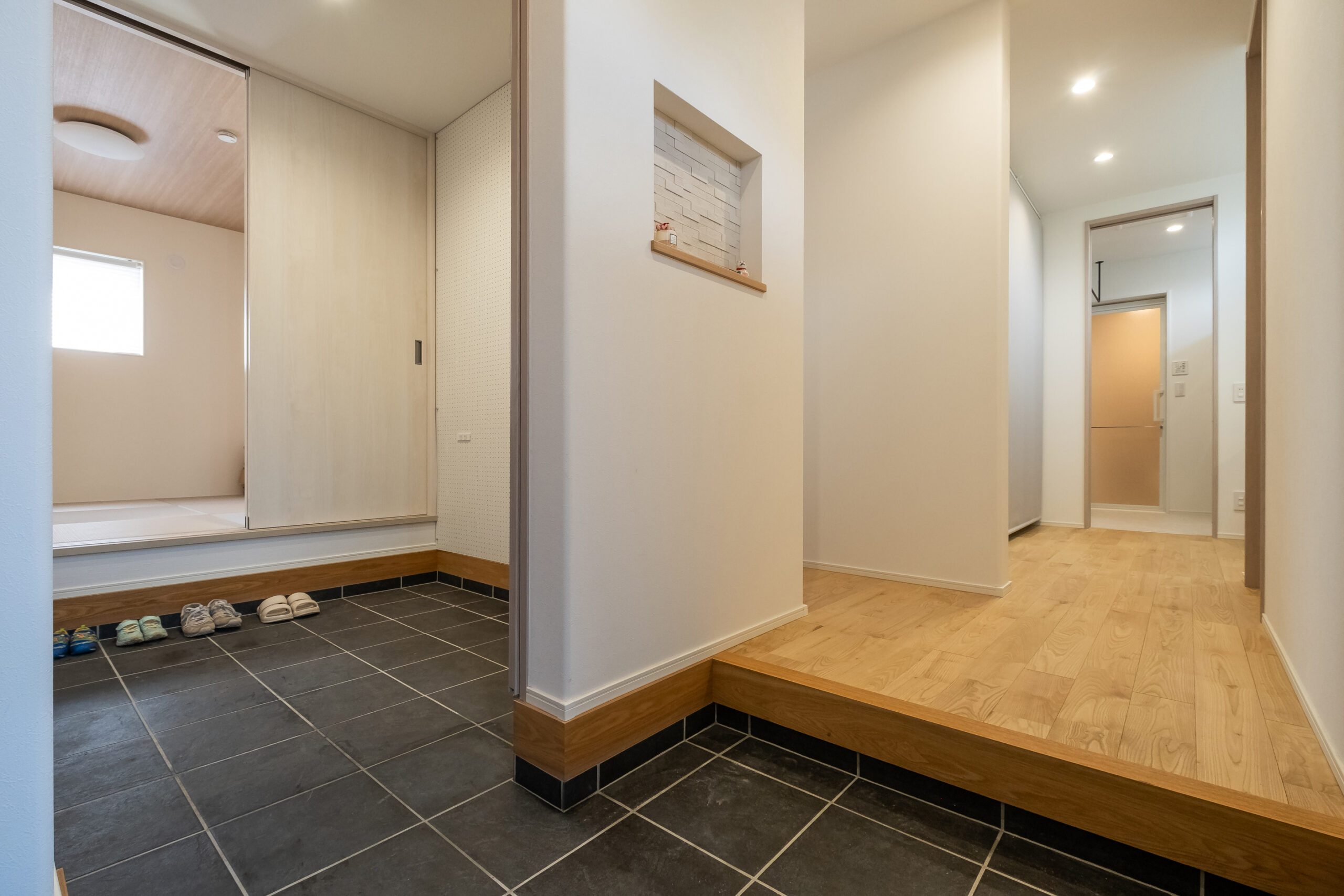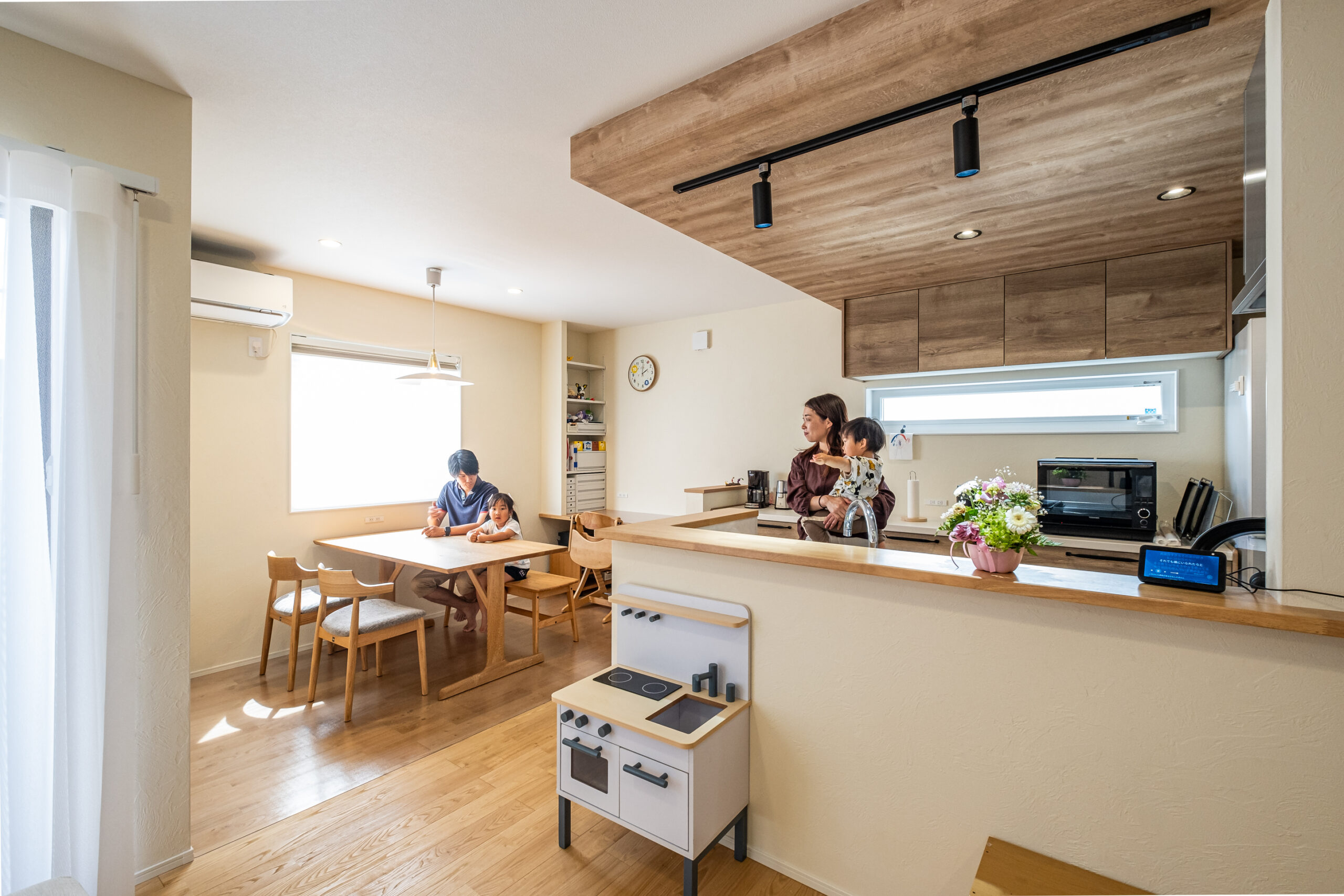 職人である奥さまのお父さまが「ここなら間違いない」と太鼓判を押していただいたのが弊社でした。昨年のZEH施工実績98%を誇る性能に加え、西添町モデルハウスの仕上がりがご夫婦のイメージに合っていたようです。
