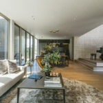 大きな窓からは柔らかな光が差し込み、室内外のつながりを感じる開放的な空間設計。